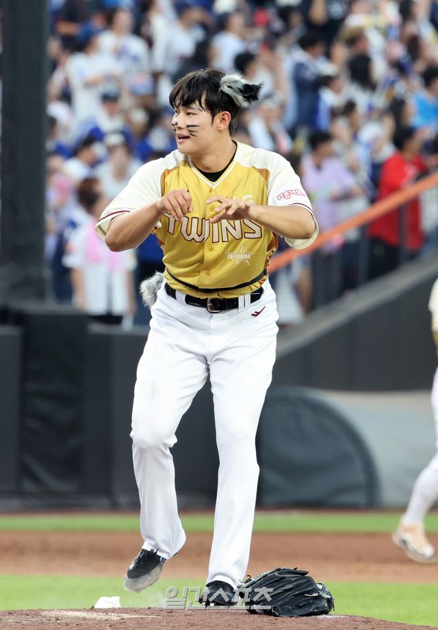 나눔 올스타 선발 투수로 등판한 코디 폰세(한화 이글스)는 1이닝의 짧은 시간에 많은 퍼포먼스를 보여줬다. 영화 '스타워즈' 광팬인 그는 다스베이더 가면과 망토, 광선검을 장착해 마운드에 올랐고, '류현진 팬'답게 마운드에선 토론토 블루제이스 류현진 유니폼을 입고 '왼손으로' 공을 던져 환호를 이끌었다.
