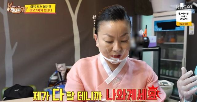 이날 이순실은 한식 코스요리 노하우를 전수받고자 ‘흑백요리사’ 이모카세를 찾았으나 재료손질 중 먹기에 집중하는 모습으로 이모카세에게 혼쭐이 났다.