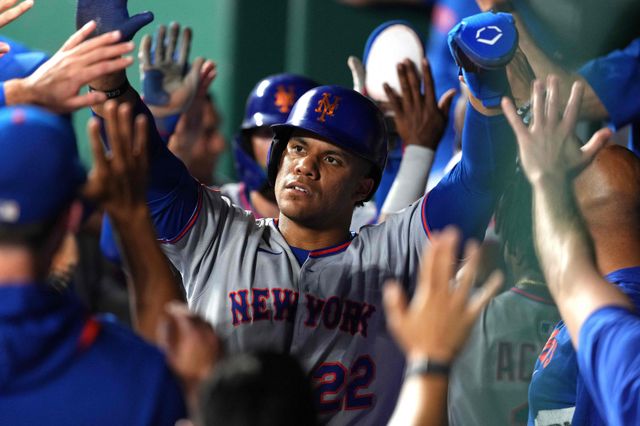 소토는 13일(한국시간) 미국 미주리주 카우프만 스타디움에서 열린 캔자스시티 로열스와의 원정 경기에 3번·지명타자로 선발 출전, 4타수 1안타(1홈런) 1득점 2타점을 기록했다. 안타 하나가 결정적인 홈런. 0-0으로 맞선 무사 2루에서 오른손 투수 조나단 볼란의 88.3마일(142.1㎞/h) 슬라이더를 잡아당겨 오른쪽 펜스를 훌쩍 넘겼다. 비거리 435피트(132.6m) 시즌 23호. 메츠는 소토의 선제 투런 홈런을 잘 지켜내 3-1 승리를 거뒀다.