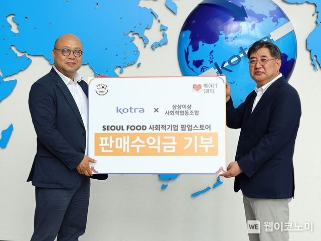 KOTRA(사장 강경성)는 국내 최대 식품 전문 전시회 ‘2025 서울국제식품산업대전(이하 서울푸드)’의 ESG 캠페인 일환으로 운영된 사회적기업 팝업스토어의 판매 수익금 1130만 원 전액을 상상이상사회적협동조합에 기부했다고 13일 밝혔다.