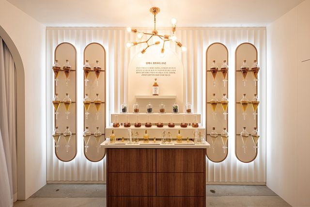 팝업은 크게 전시 존, 테이스팅 존, 멘토링 존으로 나눠 발베니의 다채로운 면모를 공유하는 장으로 꾸렸다. 전시 존은 팝업 현장을 찾은 이 누구나 자유롭게 관람하며 오감으로 발베니를 느낄 수 있었다. 발베니 더블우드 12년부터 발베니 캐리비안 캐스크 14년, 발베니 프렌치 오크 16년, 발베니 포트우드 21년까지 발베니의 대표 캐스크 피니시 라인업 각각의 풍미를 모티브로 완성해 시선을 끌었다. 이번 팝업의 백미는 테이스팅 존에 마련된 ‘메이커스 테이블 바’. 발베니가 국내 한식 분야의 장인들을 만나 그들의 노고와 장인정신을 기리는 발베니 메이커스 캠페인. 이를 통해 선보이는 위스키와 한식의 페어링을 경험할 수 있도록 기회를 마련한 것이다. 먼저 발베니 더블우드 12년은 완두 봄 샐러드와 매칭했다. 광화문에 위치한 전 세계 유일의 발베니 전용 ‘더 발베니 바’에서 개발한 음식으로 완두의 고소한 풍미가 위스키의 견과류 풍미를 배가하는 한편 바닐라 향 피니시와 만나 새로운 맛을 연출했다. 달콤한 과일 풍미와 오크 향이 어우러진 발베니 캐리비안 캐스크 14년과 페어링한 음식은 한국의집 고호재에서 선보이는 모약과 & 과일 정과. 디저트를 먼저 먹고 발베니를 마시면 위스키가 디저트의 소스인 듯 완벽하게 어우러진다. 다음은 아메리칸 오크통에 16년간 숙성한 뒤 피노 데 샤랑트를 숙성했던 프렌치 오크통에 추가 숙성해 꽃꿀의 풍미가 담긴 발베니 프렌치 오크 16년. 보통 디저트와의 조합을 떠올리지만, 부토의 누룽지 삼계죽과 매칭해 페어링의 새로운 세계를 열어줬다. 마지막으로, 포트와인 캐스크에서 묻어난 잘 익은 건포도, 풍부한 견과류 풍미와 함께 남다른 부드러움을 느낄 수 있는 발베니 포트우드 21년에는 온지음의 장산적을 곁들인 구운 증편을 매칭해 파인다이닝에서 메인 식사를 즐기듯 품격을 높였다. 모든 메뉴는 각 레스토랑과 바에서 오직 발베니와의 페어링을 위해 개발한 것이라 더욱 특별한 경험이었다.