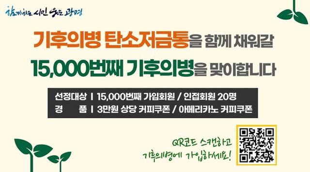 [와이뉴스] 광명시가 1만 5천 번째 기후의병에게 3만 원 상당의 커피 상품권을 증정하는 이벤트를 실시한다고 12일 밝혔다.