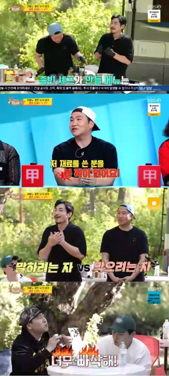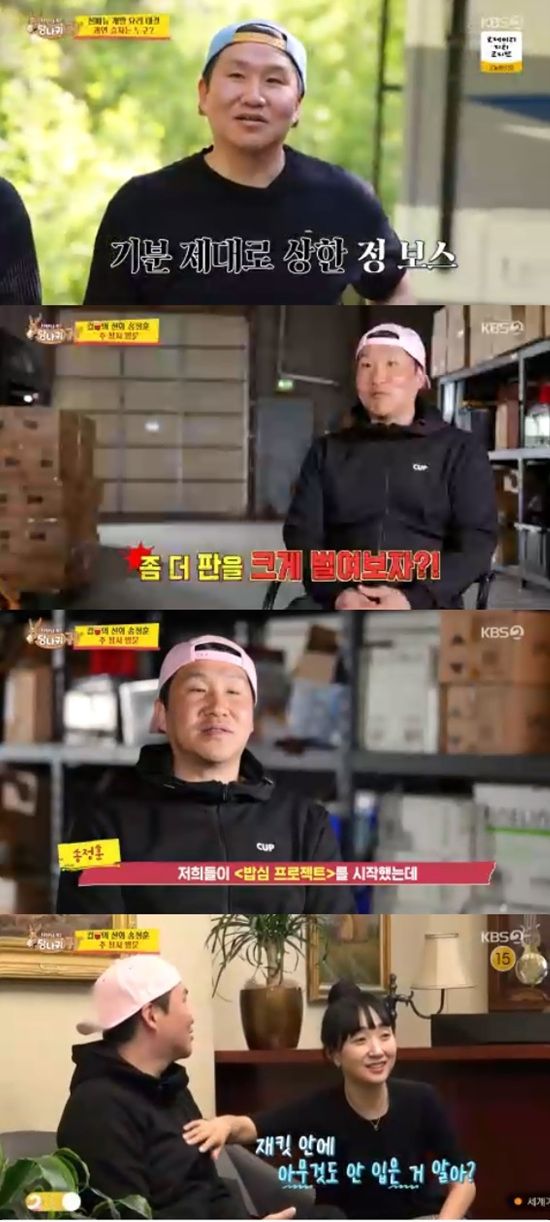 송정훈은 닭을 튀기던 도중 예상치 못하게 닭들이 엉겨붙기 시작하자 형님들을 향해 방해가 되니까 노래를 그만 불러달라고 했다.