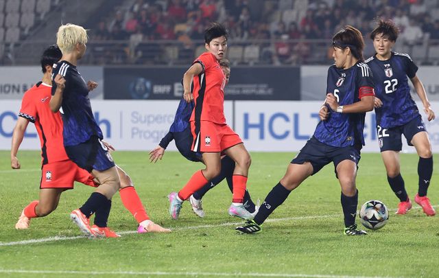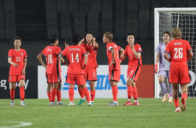 선제골 내준 대한민국 (화성=연합뉴스) 김성민 기자 = 13일 경기도 화성종합경기타운 주경기장에서 열린 2025년 동아시아축구연맹(EAFF) E-1 챔피언십(동아시안컵) 여자부 대한민국과 일본의 경기. 한국 선수들이 선제골을 내준 후 아쉬워하고 있다. 2025.7.13 ksm7976@yna.co.kr/2025-07-13 20:47:08/ <저작권자 ⓒ 1980-2025 ㈜연합뉴스. 무단 전재 재배포 금지, ai 학습 및 활용 금지>