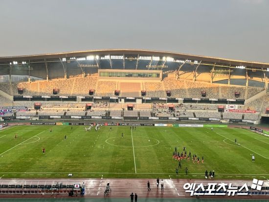 (엑스포츠뉴스 화성, 김정현 기자) 주말 경기에 여자부 한일전이지만, 화성종합경기타운 주경기장 관중석에 여전히 빈 자리가 많았다. 할인 프로모션이 효과를 보지 못했다.