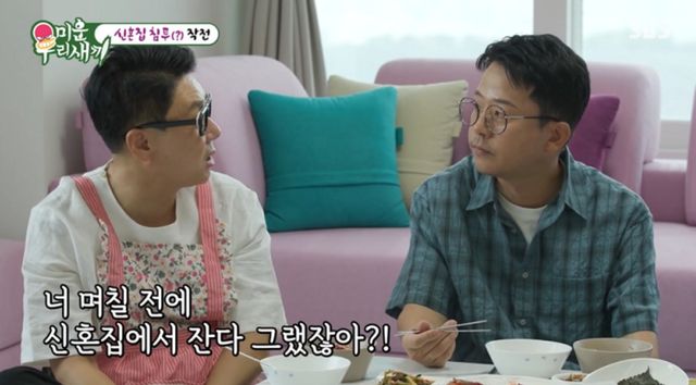 새롭게 이사한 신혼집은 남산 전망이 한눈에 들어오는 구조로 이를 축하하러 방문한 임원희와 김준호는 “지난 집은 홀아비 냄새가 났는데 여긴 확실히 다르다”라며 감탄했다. 김준호는 “지민이가 내 물건은 하나도 가져오지 말라고 한다”라고 밝혔고 이상민 역시 “아내가 내 짐 중 버릴 건 버리고 자기 짐을 옮긴다고 한다”라며 웃음을 자아냈다.