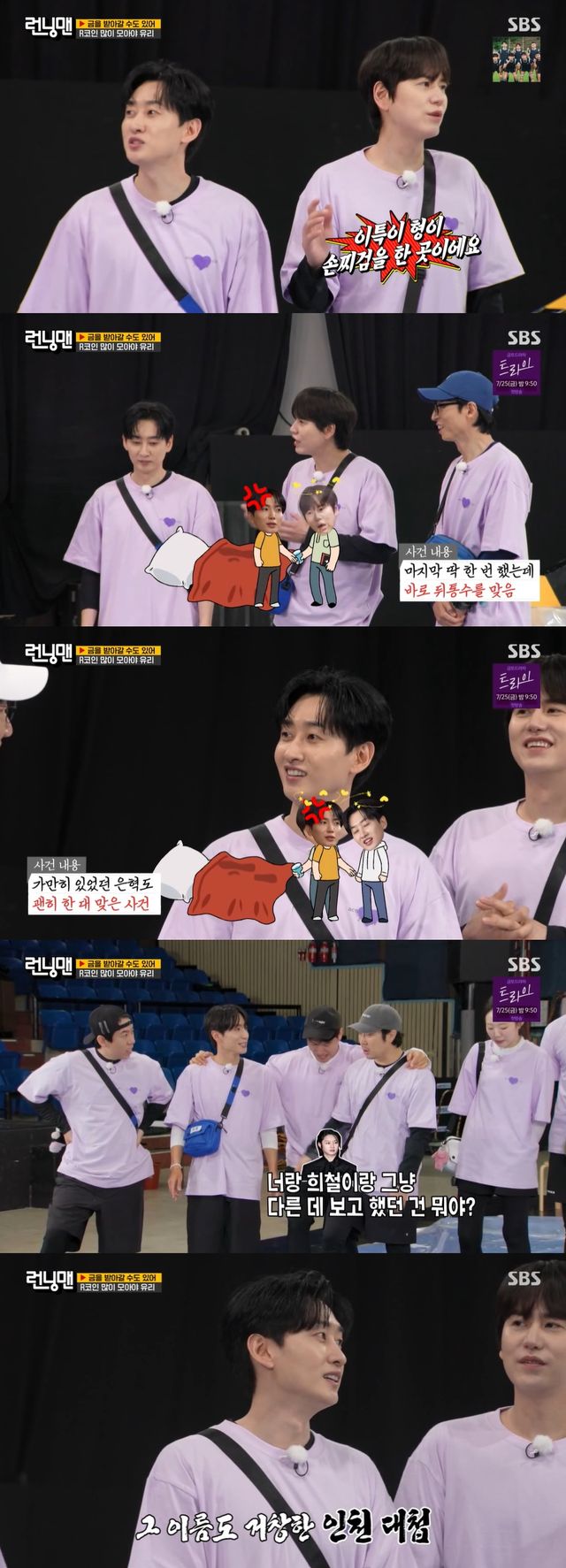 은혁은 "씩씩거리면서 그때 웃통도 까고 있었다. 진짜로 영화 보는 줄 알았다."라며 재현해 큰 웃음을 안겼다. 김종국은 당사자인 이특에게 "어떤 마음이었냐"라고 묻자, 이특은 '이제는 풀 때다'라는 마음이었다고 전했다.