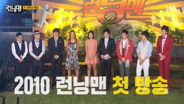 2010년 당시에 ‘런닝맨’에는 없었지만 군 복무중이었던 양세찬은 군복을, 최다니엘은 ‘지붕 뚫고 하이킥’ 캐릭터의 상징인 체크 셔츠와 안경으로 반가움을 안겼다. 유재석은 방송 15주년에 대해 "지금 버라이어티도 몇 개 없는데 '무한도전'보다 (회차가) 훨씬 길다"며 감사 인사를 전했고 지석진 역시 “15주년을 함께해 주셔서 진심으로 감사드린다”고 말했다.
