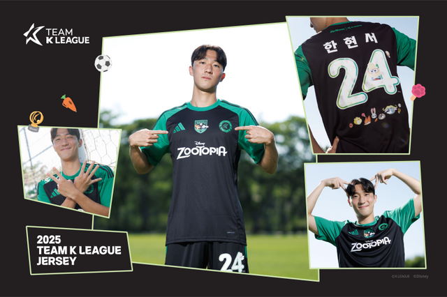 ‘2025 쿠팡플레이 시리즈’ 1경기에서 뉴캐슬 유나이티드와 맞붙는 팀 K리그의 유니폼이 공개됐다. 이번 유니폼은 팀 K리그 대표 색상인 검은색과 디즈니 애니메이션 <주토피아> 로고의 초록색을 바탕으로 K리그와 디즈니코리아, 아디다스가 협업해 제작했다.
