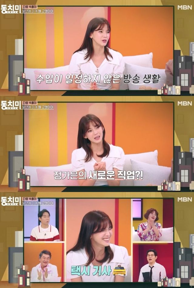 스튜디오에서 정가은은 "수입이 많이 없었다. 직업이 하나 더 추가가 됐다"며 "택시기사가 됐다"고 직접 밝혔다. 이에 패널들은 박수를 치며 축하의 뜻을 전했다.
