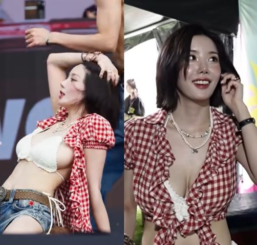 특히 영상 속 권은비는 워터밤에서도 착용한 짧은 데님 팬츠와 빨간 체크무늬 셔링 블라우스를 그대로 입고 무대를 선보여 감탄을 자아낸다. 또한 의상 리허설과는 달리 워터밤 무대에서는 화이트 톱이 아닌 과감한 니트 비키니를 입고 안무를 소화해 더욱 시선을 끈다.