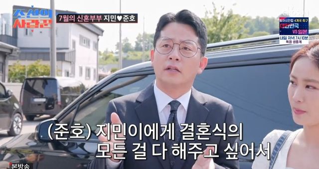 이날 방송에선 김준호와 김지민이 결혼식에 앞서 함을 받는 모습도 공개됐다. 김준호와 동해 친정을 방문한 김지민은 단정한 수트를 차려 입은 김준호를 “국회의원이 아니다. 새신랑이다”라고 소개했다.