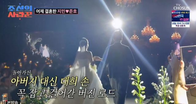 결혼식의 사회를 맡은 이상민은 “하객 분들의 축하 속에 새 출발을 하겠다. 신랑신부 출발”이라고 힘차게 외쳤고, 김준호와 김지민은 나란히 버진로드를 걷는 물론 카메라 앞에서 뜨거운 입맞춤을 나누는 것으로 박수를 받았다.