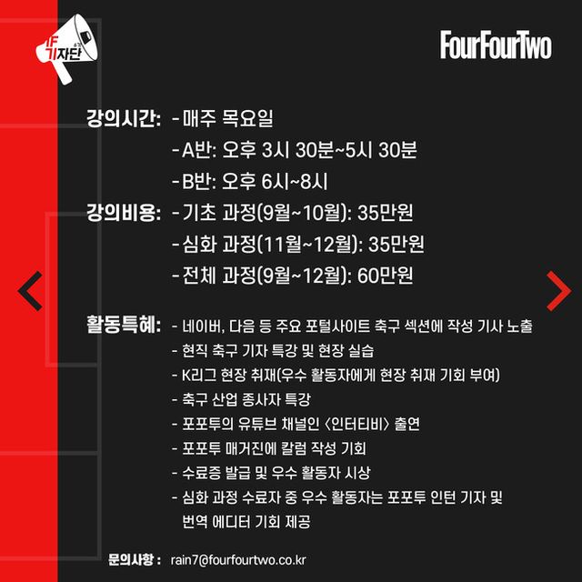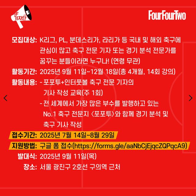 [인터풋볼] 차윤정= 전 세계에서 가장 많은 부수를 발행하고 있는 ‘No.1’ 축구 전문지 포포투가 축구 전문 기자 아카데미 <IF 기자단> 6기를 모집한다.