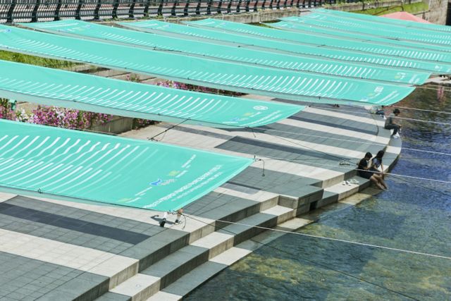 그룹의 CI색상인 시원한 청록색 컬러로 제작된 대형 그늘막은 청계천 시점부인 모전교부터 광통교까지 약 50m 구간에 설치됐다. 그늘막은 9월까지 운영되며, 사용된 원단은 가방이나 파우치 등 업사이클링 제품으로 활용될 계획이다.