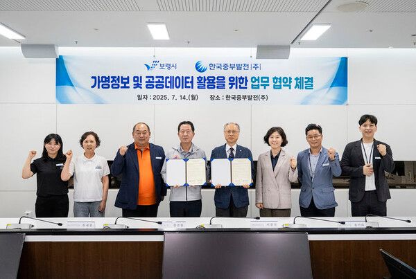 한국중부발전이 14일 충남 보령 본사에서 보령시와 '가명정보 및 공공데이터 활용'을 위한 업무협약을 체결했다고 밝혔다.