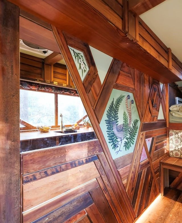 주택은 길이 6m, 폭 1.35m, 높이 2.1m 내부는 생각보다 훨씬 넓어 보인다. 외장은 대부분 시더 목재로 구성됐으며, 프레임은 강철, 한쪽 외벽은 직접 그린 대형 벽화가 있는 시트로 마감됐다.