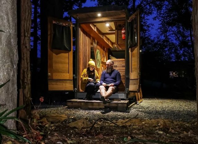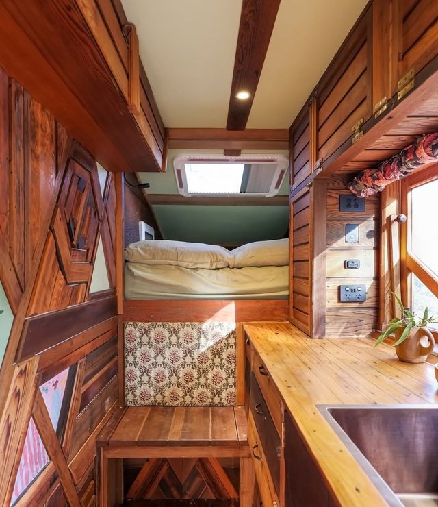 이 초소형 주택은 몇 년 전 목수인 스티브가 여행을 다니기 위해 고안했다. 그는 자신의 공구를 함께 싣고 다니며 일을 계속하고 싶었다. 스티브는 목수이고, 그의 파트너 제이드는 타투이스트다.