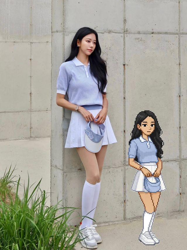 더욱 재미있는 것은 옆에 함께 등장한 픽셀 캐릭터다. 송다혜와 똑같은 블루 톤 의상을 입고 있는 이 캐릭터는 마치 게임 속에서 튀어나온 것처럼 보이며, 현실과 가상의 경계를 허무는 독특한 연출이다. 이런 창의적인 아이디어는 젊은 세대들 사이에서 큰 화제를 모으고 있다.