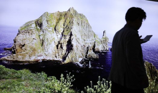 독도 사진 앞 지나는 시민. (사진=연합뉴스)