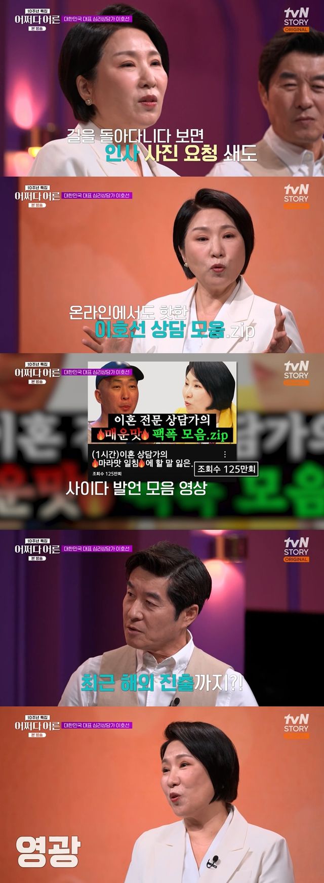 최근에는 해외 진출까지 했다고. 이호선은 "대단한 거 아니다"라며 겸손한 태도를 보이면서도 "해외에서 강연은 워낙 그전에 했었다. 최근에 '이호선의 나이 들수록 관계편'이라는 책이 있는데 중국, 대만에서 책을 내겠다고 연락이 왔다. 영광스럽다. 살다보니 이런 일이 다 있다"고 기쁨을 드러냈다.