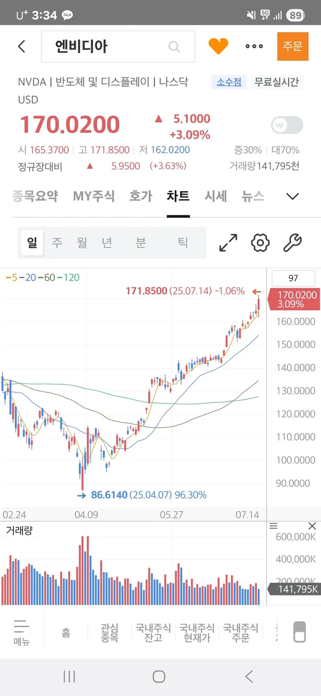 3개월만에 약 100프로오름.