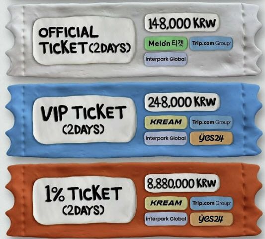 1% 티켓에는 전용 입·퇴장 게이트, 메인 스테이지 위 관람, VIP 라운지 이용, 전용 F&B 부스, 주류 무제한 제공, 오피셜 굿즈, 애프터파티 티켓 등의 혜택이 주어진다.