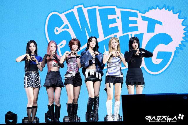 16일 이프아이(카시아, 라희, 원화연, 사샤, 태린, 미유)는 서울 용산구 블루스퀘어 SOL 트래블홀에서 두 번째 미니앨범 물결 '낭' Pt.2 'sweet tang(스윗탱)' 발매 기념 쇼케이스를 개최했다.