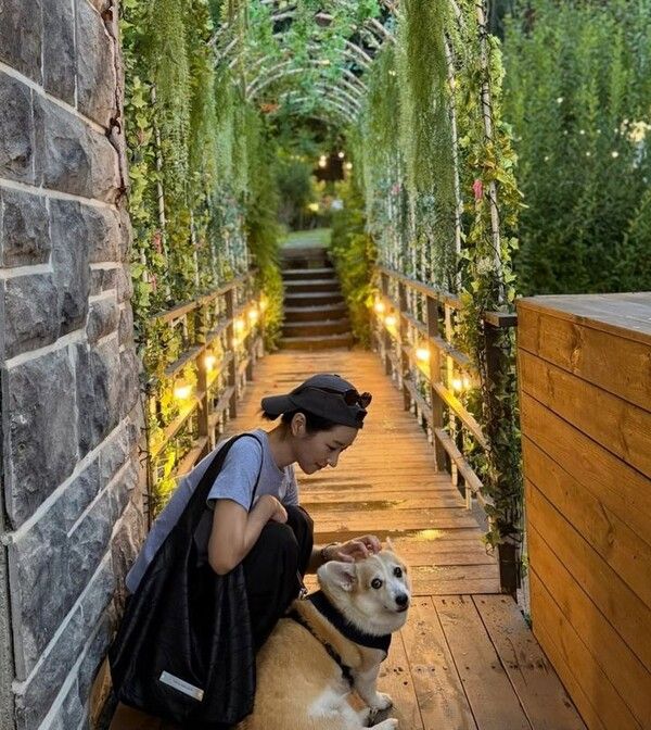 배우 서예지가 편한 모습으로 반려견과 함께 산책을 즐겼다.