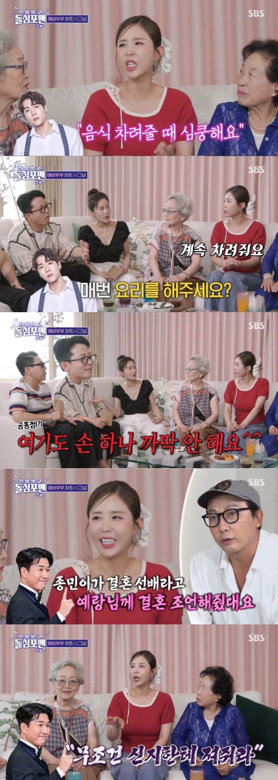 이와 함께 기혼 선배인 김종민이 문원에게 조언을 해줬다면서 "'무조건 신지한테 져줘라. 무조건 맞춰주라'고 했다더라"고 말해 웃음을 줬다.