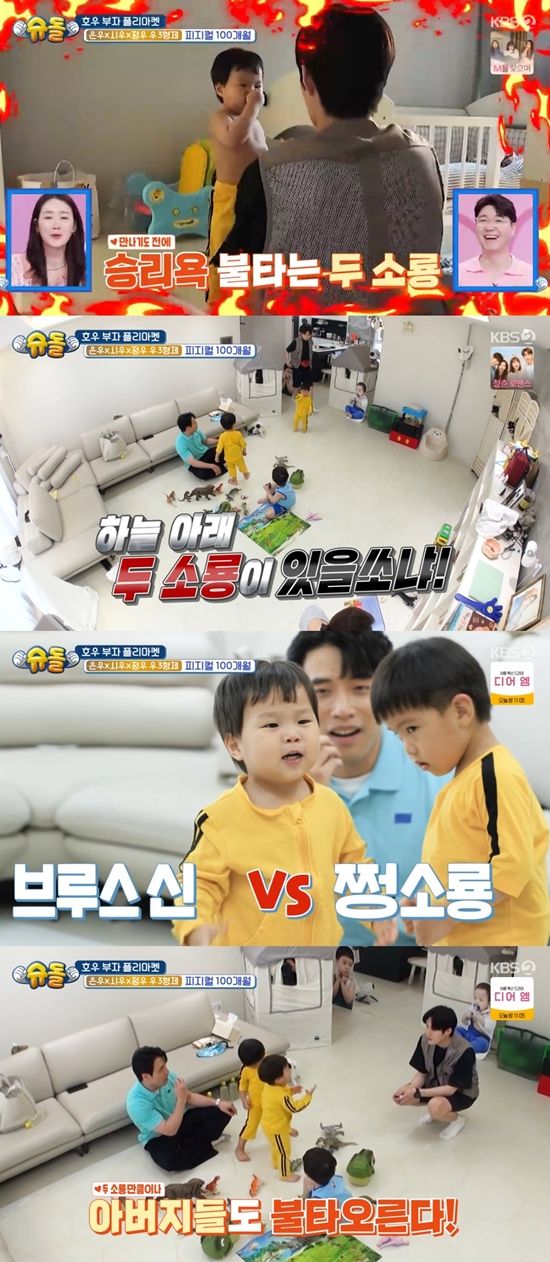 정우의 '아뵤' 소리를 들은 신민철도 시우를 일으키며 "(정우가) 쩡소룡 연습하고 있는 것 같다. 너는 브루스 신이다. 준비됐냐"라며 연습을 시켰다. 안영미는 "이거는 아빠들 싸움이다"라며 즐거워했다.