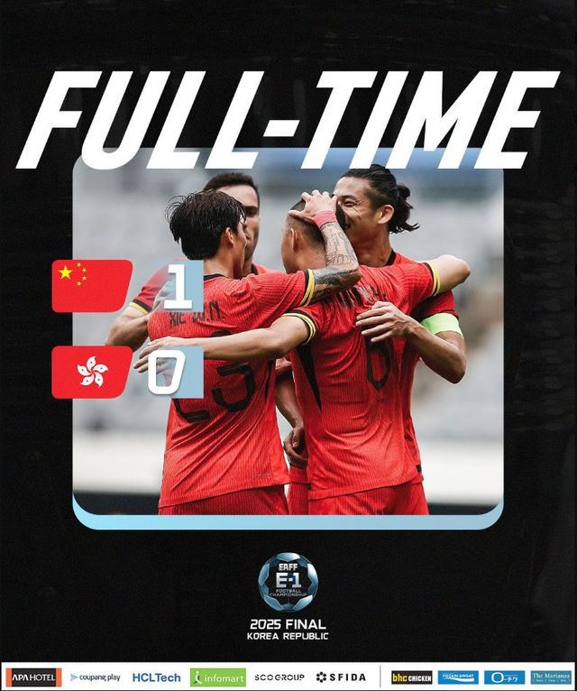 중국 축구 국가대표팀은 지난 15일 용인미르스타디움에서 열린 홍콩과의 2025 동아시아축구연맹(EAFF) E-1 챔피언십(동아시안컵) 남자부 최종전에서 전반 20분에 터진 황정위의 결승골에 힘입어 1-0으로 승리했다.