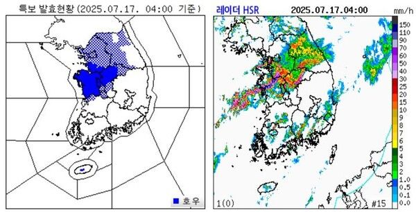 17일 오전 4시 기준 충남 서산에 시간당 최고 107.1㎜의 물폭탄이 쏟아졌다.