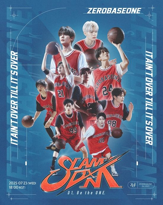 공개된 포스터 속 제로베이스원은 농구 유니폼을 입고 등장, 실제 경기에 나선 듯한 박진감 넘치는 포즈로 생동감을 더했다. 제로베이스원은 또한 선발 라인업처럼 꾸며진 포스터를 통해 다부진 각오를 전했다. '끝날 때까지 끝난 게 아니다'라는 문구처럼, 아홉 멤버는 '슬램덩크'를 통해 끝없는 매력을 선사할 것으로 기대된다.