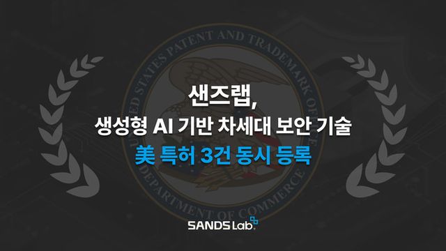 [프라임경제] 인공지능(AI) 보안 전문 기업 샌즈랩(411080)이 자사가 개발한 보안 기술 3건에 대해 미국 특허청(USPTO)으로부터 특허 등록이 완료됐다고 17일 밝혔다.