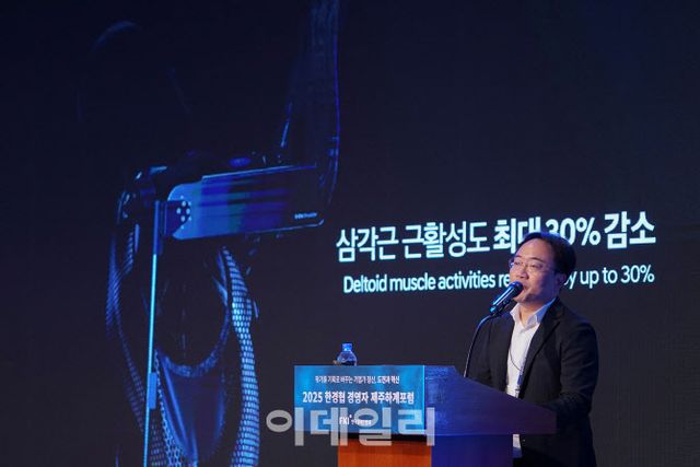 현동진 현대자동차 로보틱스랩장 상무는 17일 제주 롯데호텔에서 열린 ‘2025 한경협 CEO 제주하계포럼’ 강연에서 로봇 사업의 지향점에 대해 이렇게 말했다. 현대차는 자동차 외에 첫 출시하는 산업용 착용 로봇 ‘엑스블 숄더’를 이달부터 국내에 양산해 공급한다. 그는 “로보틱스는 단순한 하드웨어 제조업이 아니다”고 설명했다.