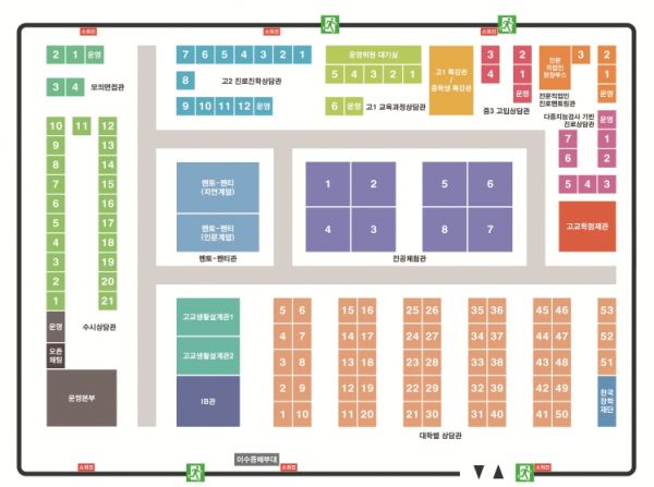 이번 박람회는 중학생부터 고3 및 졸업생까지 다양한 연령대 참가자의 눈높이에 맞춰 1:1 상담부터 소규모 특강 등 다양하게 구성된 진학부문 13개관, 진로부문 3개관, 총 16개관이 마련됐다.
