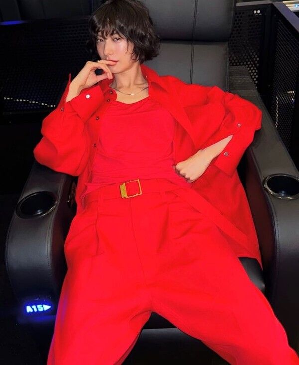 사진 속 나나는 전부 빨간색인 의상을 걸친 채 고혹적인 눈빛을 뽐냈다.