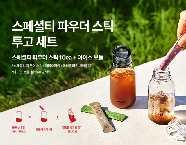 또한 18일 출시하는 스페셜티 파우더 스틱 TO-GO 세트는 차가운 물에 타기만 하면 아이스 커피가 만들어지는 간편한 방식으로 테라로사 커피의 맛을 그대로 즐길 수 있도록 기획됐다. 매장에서는 18일부터, 테라로사 자사몰과 29CM, 마켓컬리, 네이버스토어 등 온라인 채널에서는 21일부터 순차적으로 만나볼 수 있다.