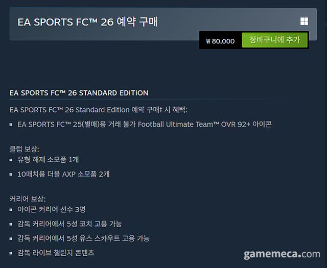▲ 국내에서는 FC 26 스텐다드 에디션만 구매할 수 있다 (자료출처: 스팀 공식 페이지)