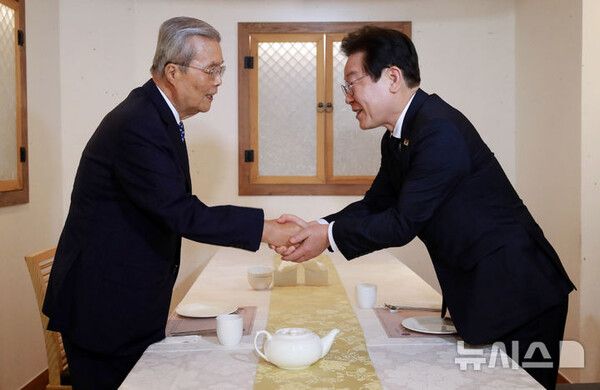 이재명 대통령이 17일 김종인 전 국민의힘 비상대책위원장과 오찬을 함께했다. 김 전 위원장이 대통령 미국 특사에서 제외된 후 이뤄진 회동이다.
