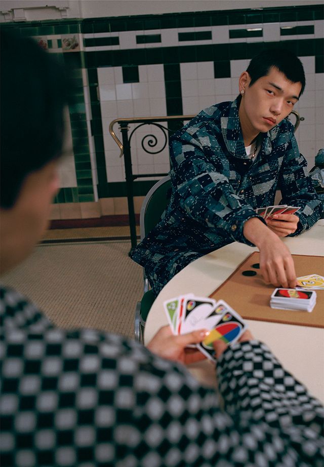 모노그램 테일러드 기모노 재킷, 클래식 롱 슬리브 셔츠 모두 Louis Vuitton.