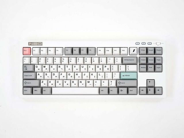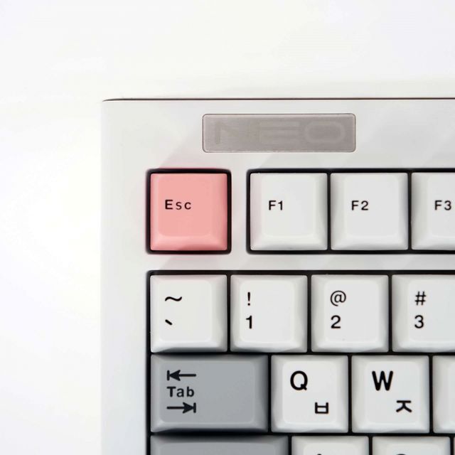 레트로 하면 역시 ‘그레이’ 컬러를 잘 사용해야 한다. 과거의 키보드들이 화이트와 그레이 키캡을 섞어 사용한 만큼 이 두가지만 잘 조합해도 그때의 느낌을 되살릴 수 있다. NEO87 레트로 역시 이 두 컬러를 메인으로 사용하고 있다. 다만, 레트로와 세련된 현대적 감각을 함께 구현하기 위해 ESC와 ENTER 두 키에만 살짝 다른 컬러로 포인트를 준 것도 이채롭다.