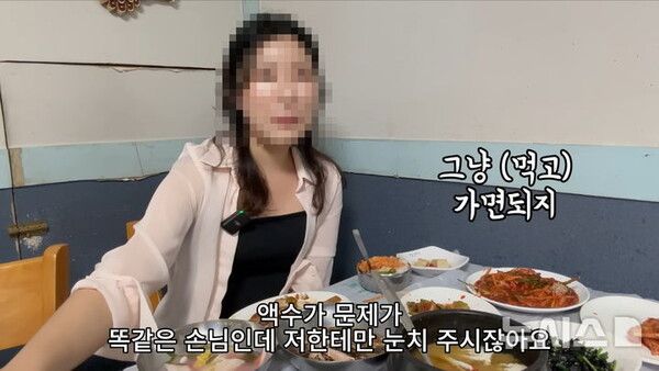이후 A씨는 식당 측에 "얼굴만 나오게 음식 영상을 찍어도 되겠냐"고 허락을 받고 구석 자리에 앉아 차례로 나오는 반찬들을 영상에 담았다. 이어 카메라를 끄고 조용히 식사했다.