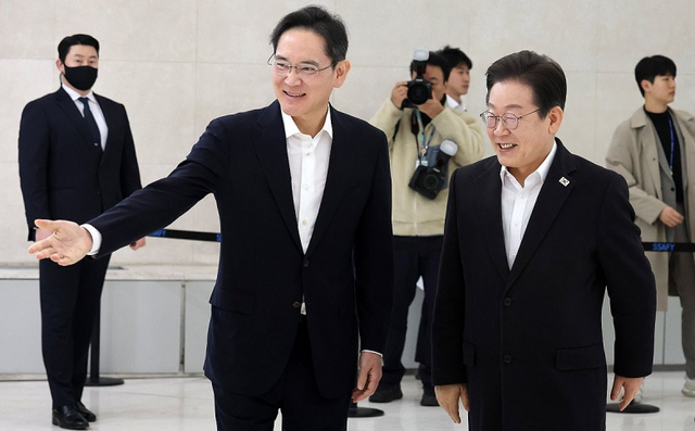 지난 3월 이재용(왼쪽) 삼성전자 회장을 만난 이재명 대통령. 연합뉴스