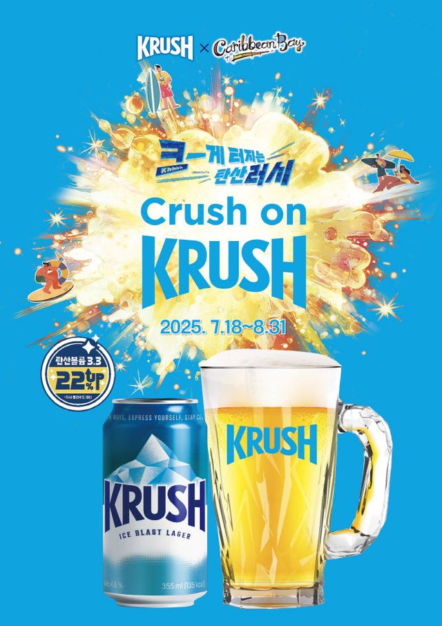 한편, 크러시는 클라우드 대비 탄산 볼륨이 22%가 높은 3.3GV(Gas Volume)의 청량감이 뛰어난 올몰트 맥주로, 지난 5월 제품의 뚜껑 전체가 개봉되는 방식의 크러시 풀오픈(Full Open)캔 맥주 제품을 출시했다.