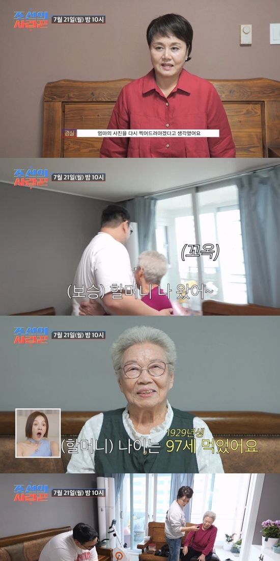 21일 방송될 TV CHOSUN ‘조선의 사랑꾼’에서는 이경실이 가족들과 함께 어머니의 집에 방문한다. 현재 97세인 이경실의 어머니는 건강하고 밝은 모습으로 딸 이경실과 손주들을 반겼다.