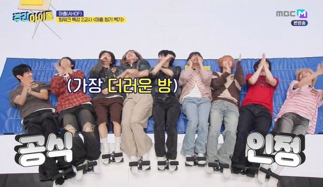 이어 팀워크 특강으로 스피드 퀴즈와 청기 백기, 일심동체 바지 입기 게임 등을 펼쳤다. 청기 백기 게임에선 몸으로 팀워크를 증명해야 했다. 지시어에 해당하는 멤버만 윗몸일으키기를 하는 게임으로, 차웅기는 “저희가 말은 안 통하지만 몸은 통하거든요”라고 자신했다.