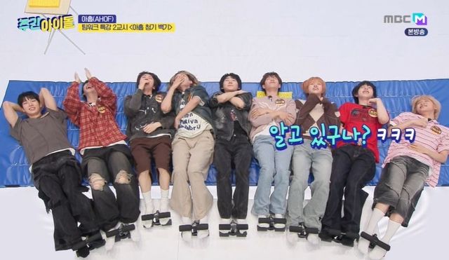 형준은 “민혁 형의 ‘주간아’ 첫 출연처럼 데뷔 2주를 막 넘긴 새싹 그룹”이라며 아홉을 소개했다. 아홉(스티븐, 서정우, 차웅기, 장슈아이보, 박한, 제이엘, 박주원, 즈언, 다이스케)이 ‘주간 아이돌’에 처음 등장했다.