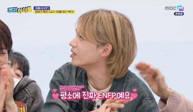 마지막 지시어는 MBTI 중 ‘INFP’와 ‘ENFP’ 일어나기. 이대로 성공하는 듯싶었지만, 무언가 이상하단 걸 느낀 민혁은 다시 일어나보라고 했다. 장슈아이보는 MBTI가 ESFP라고 고백했다가 “너 ENFP잖아”란 멤버들의 반응을 듣고 “평소에 ENFP다”라고 말을 바꾸어 웃음을 안겼다. 이에 민혁은 “대기실 와서 검사하고 갈래요? 다른 곳에 가서 ESFP라고 하면 안 된다”라고 몰아가 웃음을 안겼다. 장슈아이보는 꿋꿋하게 ENFP임을 고집했고, 결국 미션에 성공했다.